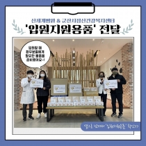 <군산시정신건강복지센터 '입원지원용품' 전달>군산시정신건강복지센터에서 입원지원용품을 전달하였습니다.수건, 물병, 샴푸, 린스, 치약, 칫솔, 마스크, 곽티슈 등 입원할 때 필요한 물품입니다.신세계병원과 군산시정신건강복지센터가 환우분들과 함께 합니다!행복이 ! 여기에 !