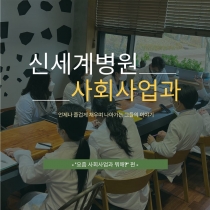 <새롭게 늘 발전하는, 사회사업과>신세계병원의 사회사업과에서는 정신건강 분야의 전문지식과 기술을 갖춘 정신건강사회복지사가환우가 가족들의 심리적 · 사회적 · 경제적 · 환경적인 문제 등다양한 측면의 개입으로 당사자들의 회복과 사회복귀를 돕고 있습니다.프로그램 개발 '정신건강의학과 데이케어 매뉴얼' 등을 활용하여환우 및 가족을 위한 정신의료기관의 특성을 살린 다양한 형태...