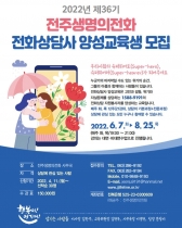<2022년 제 36기 전주생명의전화 전화상담사 양성교육생을 모집합니다!>전주생명의전화는 전화상담사 양성교육을 통해 전화상담 자원봉사자를 양성하여고민과 갈등, 위기와 자살문제를 상담하고 있습니다.우리사회의 슈퍼히어로(Super-hero), 슈퍼히어러(Super-hearer)가 되어주세요~!접수문의 : 063)286-9192행복이 ! 여기에 !