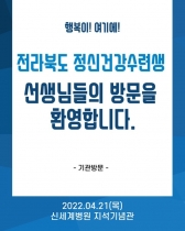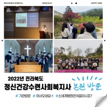 <2022년 전라북도 정신건강사회복지사 본원 방문>병원 소개 및 교육 실시금일 2022년 전라북도 정신건강수련사회복지사 선생님들께서 본원에 방문해 주셨습니다. 이번 방문은 김한주 병원장의 환영사를 시작으로,이경현 사회사업과장의 병원 소개 및 정신건강 분야에서의 정신건강사회복지사의 역할에 대한 교육이 진행되었습니다.병원 시설 라운딩 실시코로나19 관계로 병동을 포함해 외부인 출입금...