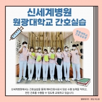 <신세계병원 & 원광대학교 간호실습>신세계병원에서는 간호실습을 통해예비간호사로서 임상 수행 능력을 익히고, 전인 간호를 수행할 수 있도록 교육하고 있습니다.행복이 ! 여기에 !