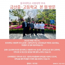 <동국대학교 사범대학 부속 금산중·고등학교 본원 방문>2022년 04월 27일 (수),동국대학교 사범대학 부속 금산중·고등학교 박기남 교장선생님과 박동창 교감선생님, 학생들이본 원에 방문하였습니다.김제시 금산면에 위치한 동국대학교 사범대학 부속 금산중·고등학교는본 원과 교류하며, 지역사회 내 정신건강 증진을 위해 함께 노력하고 있습니다.신세계병원은 지역사회 내 중·고등학교 학생들에게...