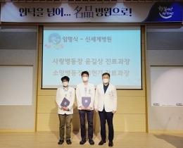<신세계병원 임명장 수여식>09월 15일 (수), 신세계병원에서 임명장 수여식이 진행 되었습니다.윤길상 사랑병동 병동장이현기 소망병동 병동장사랑병동은 급성·만성정신장애, 조울병, 우울증, 성격·행동장애, 청소년행동장애 등의 환자를 대상으로 치료하고, 재활을 돕고 있습니다.소망병동은 급성 및 만성알코올, 약물중독 등의 환자를 대상으로 치료를 제공하고 재활을 돕고 있습니다.임명받으신 ...