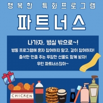 <남성 정신과병동 특화프로그램 '파트너스'>남성 정신과병동에서 남성환우만을 위한 특화프로그램 '파트너스'를 진행합니다.병실 밖으로 함께 나와 프로그램에 참여하고, 파트너스끼리 한 달 동안 출석 점수도 모으고,출석 점수를 모은 만큼 푸짐한 선물까지 받아가는 프로그램입니다!행복이 ! 여기에 !