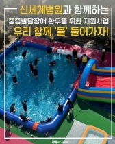 <신세계병원이 함께한 마음나누리센터, 중증정신 및 발달장애인 대상 수중체육활동>지난 8월 13일(수)~14일, 신세계병원 운동장에서중증정신·발달장애인을 위한 여름 수중체육활동「우리 함께 물! 들어가자」 프로그램이 진행되었습니다.비영리민간단체 마음나누리센터의 2025년도 전라북도교육청 보조사업 일환으로 진행된 이번 활동은유관기관인 신세계병원 운동장에서 진행되었으며,평소 쉽게 ...