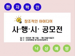 <2020년 낙상예방 및 환자확인 사행시 공모전 수상작>환자안전전담부서에서 낙상예방 및 환자 확인 수행률 증진과 환자안전의식 고취를 목적으로 진행된사행시 공모전이 2020년 7월 15일에서 24일까지 총10일 간 진행되었습니다.이번 사행시 공모전은 ‘환자확인’, '낙상예방'을 초성으로 진행되었으며,직원들의 톡톡 튀는 아이디어와 창의력이 돋보였던 공모전이었습니다.창의적인 사행시 수상...