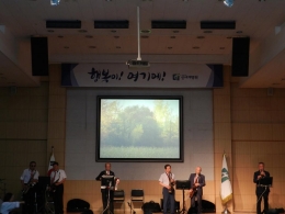 <해피니스 사운드>2019년 8월 8일 (목) 본 원에 오랜만에 반가운 분들이 찾아주셨습니다.그 주인공은 바로해피니스 사운드의 신영태 사무국장 외 9명의 단원분들입니다.즐거운 노래방 반주에 맞춰 색소폰 연주를 선보였으며,판소리와 한춤까지 다양한 구성으로환우님들이 직접 노래를 부르며 함께 공연을 완성해 나갔습니다.환우님들도 직접 공연에 참여할 수 있도록 무대를 구성해 주신해피니스 사...