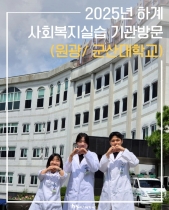 <2025년 하계 사회복지실습 기관방문>이번 여름, 반가운 얼굴들이 병원을 찾아왔습니다!원광대학교 정한영,최가영 실습생,군산대학교 장윤정 실습생총 3명의 사회복지학과 학생들이 하계 사회복지실습을 진행했습니다.실습 기간 중간 각 학교 사회복지학과 교수인 ‘원광대학교 박은아교수’, ‘군산대학교 서정희교수’가 직접 방문해학생들을 격려해 주었습니다.학생들의 열정과 교수님들의 따뜻한 ...