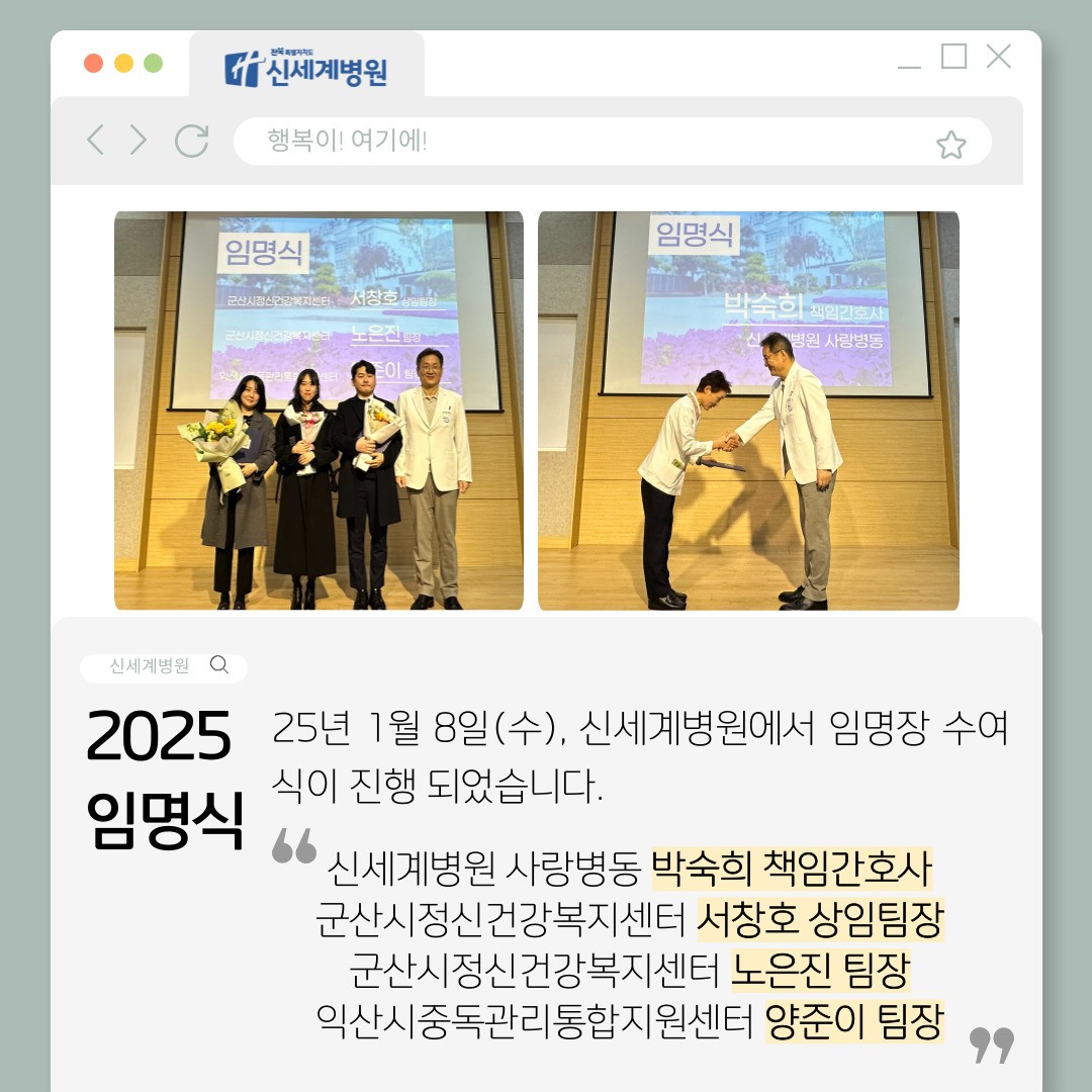 25년 1월 8일(수), 신세계병원에서 임명장 수여식이 진행 되었습니다.