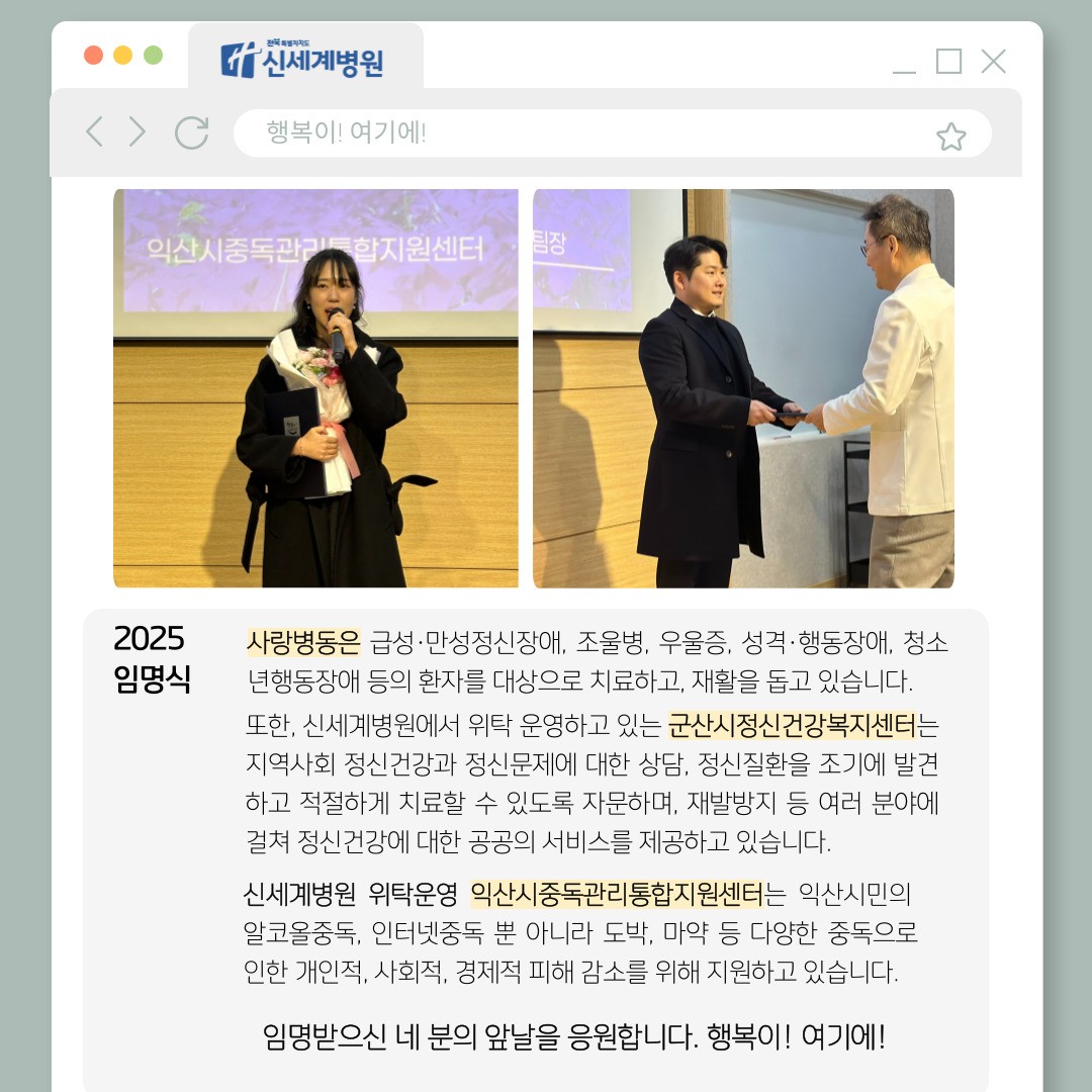 신세계병원 위탁운영 익산시중독관리통합지원센터는 익산시민의  알코올중독, 인터넷중독 뿐 아니라
