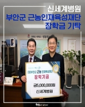 <신세계병원이 부안군 근농인재들을 응원합니다!>신세계병원(김한주 병원장)이 부안군 근농인재육성재단에 장학금 500만 원을 전달했습니다.김한주 병원장은 2020년부터 꾸준히 근농인재육성재단을 후원해왔으며, “학생들이 따뜻한 관심을 기억하고 지역을 이끌 인재로 성장하길 바란다”며 앞으로도 지역과의 나눔 활동을 이어가겠다는 뜻을 전했습니다.2014년부터 부안군정신건강복지센터를 위탁...