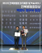 <제53차 전북병원회 정기총회 및 학술세미나_대한중소병원협회장상/전북병원회장상 수상>대한중소병원협회장상 총무과 정유안 총무팀장전북병원회장상 원무과 백병두 원무팀장지난 11월 25일(월) 진행된 제53차 전북병원회 정기총회 및 학술세미나에서 뜻깊은 상을 수상하였습니다!총무과 정유안 총무팀장과 원무과 백병두 원무팀장은 헌신적인 봉사정신과 지역사회 의료 발전에 이바지한 공로를 ...